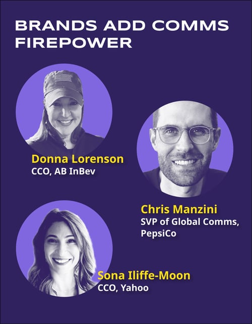 AB InBev — parent company of America's now-second favorite beer — brought on Donna Lorenson, a 20-year strategic communications veteran, as chief communications officer who will report directly to CEO Michel Doukeris. PepsiCo named a former agency president as its global head of communications. Yahoo poached Lyft’s top communicator as its new CCO. And several other brands, including SAP, AMC, and Walmart, have also recently added Chief Communications Officers to their team.